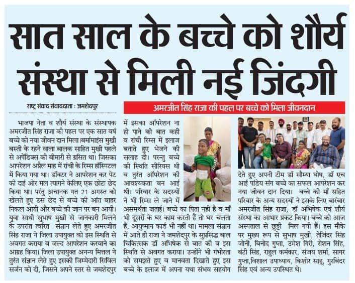 Shaurya Sanstha was founded in Jamshedpur with a simple belief – that no child should be denied medical care, no family should be left hungry, and no differently-abled person should be deprived of dignity.